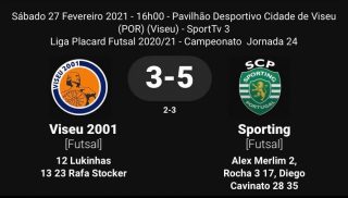 O Viseu 2001 realizou uma excelente exibição contra o Sporting. Na primeira parte o Sporting entrou a todo gás e chegou ao 2-0 aos 3 minutos. O Viseu 2001 reagiu e logrou chegar à igualdade com golos de Lukinhas e Rafa Stocker. Antes do intervalo o Sporting chegou à vantagem. Na segunda parte os viseenses continuaram a lutar e Rafa Stocker faz o empate aproveitando o adiantamento de Guitta.